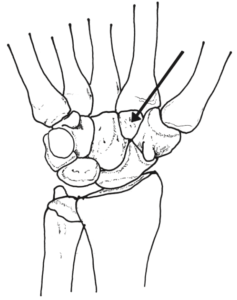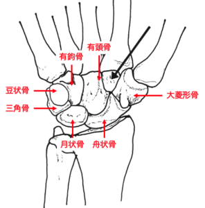 手根骨を図に示す。矢印の部位はどれか。