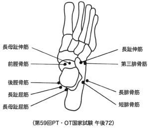 問題2 足部の外がえしに作用する筋はどれか。2つ選べ。